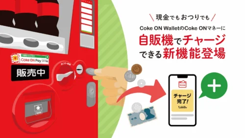 日本コカ・コーラは、コカ・コーラの公式アプリ「Coke ON」に、おつりや紙幣を自販機でチャージできる新しい機能「自販機チャージ」を、3月中旬より順次、全国へ展開する。