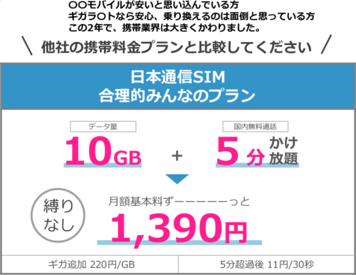 日本通信、10GBで5分かけ放題が1390円のプランを提供開始