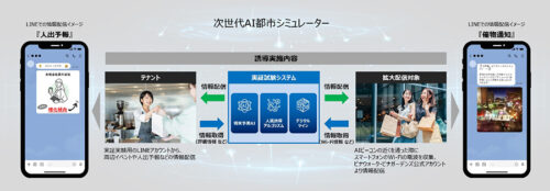 同実証実験では、「次世代AI都市シミュレーター」のデータなどを活用し、イベントの集客や購買、店舗運営の効率化を促進することで、都市全体の暮らしやすさの向上や地域経済の活性化を図る他、フードロスの削減や省エネルギーなど、サステナブルな都市づくりに向けた課題解決も目指すとのこと。