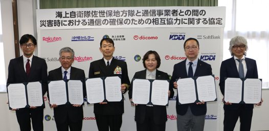 海上自衛隊佐世保地方隊と、NTTドコモ、KDDI、ソフトバンク、楽天モバイル、沖縄セルラー電話の通信大手5社は1月20日、「災害時における通信の確保のための相互協力に関する協定」を締結した。この協定は、自衛隊の海上輸送力と通信事業者の機材を組み合わせることで、陸路が遮断された孤立地域での通信確保を目的としている。平時からの連絡体制構築や共同訓練を通じ、災害に強い地域社会の実現に向けた取り組みを継続する方針だ。