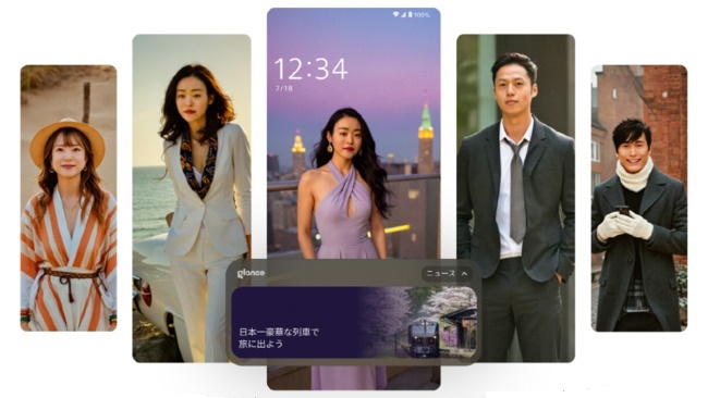 さらに、AI活用型ECサービス「Glance AI for AQUOS」では、顔写真を撮ると、AIが自動でおすすめの服を着た写真を生成し、オンラインファッションストアのリアルタイムデータを元に最新のスタイルを試すことができる。気に入ったスタイルがあれば、関連する商品を販売するサイトへ直接アクセスも可能だ。さらに、ロック画面にはAIが選んだ最新ニュースが表示される機能も加わった。