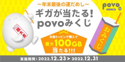 【業界トピックス】povo2.0、12月23日から「ギガが当たる!povoみくじ~年末最後の運だめし~」開催