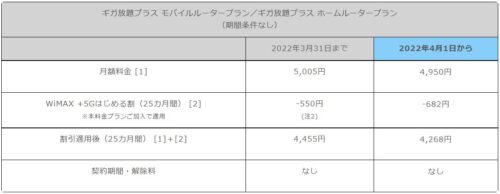 UQコミュニケーションズは4月1日から、WiMAX +5Gサービスの「ギガ放題プラス モバイルルータープラン」と「ギガ放題プラス ホームルータープラン」の期間条件なしプランを改定する。同改定は3月31日時点で同料金プランに加入中のユーザーにも適用となる。