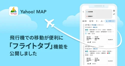 Yahoo! MAP、飛行機を使ったルートを検索できる「フライトタブ」機能を提供開始